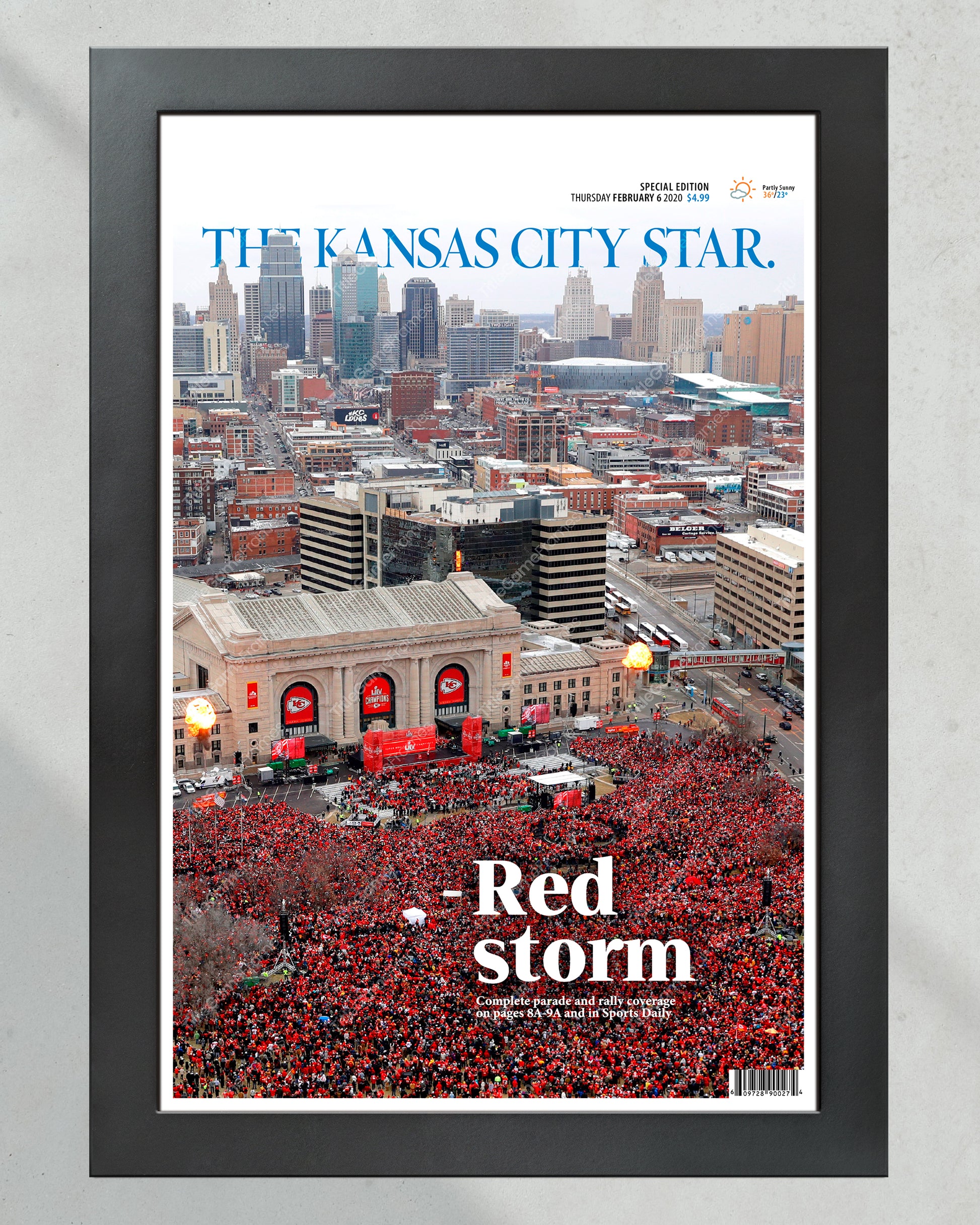 2020 Kansas City Chiefs “Red Storm” Super Bowl LIV Championship Parade Framed Front Page Newspaper